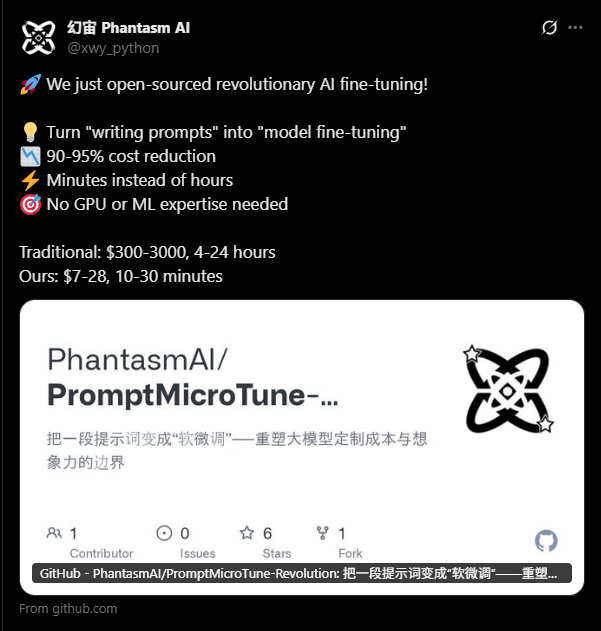 - 让“微调”从硬件工程转变成“写提示词”这样人人都能掌握的文字游戏;